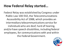 Federal Relay Services Solutions For Functional Equivalency In The Workplace Mark Seeger Ppt Download from images.slideplayer.com Trs is available in all 50 states, the district of. Not just the federal relay service anymore. Some wireless relay services (from sprint relay, ip relay, and hamilton relay) do not use instant messaging. Sprint's federal relay service (frs). This system is operated by sprint in support of the general services administration federal. There's also a federal video relay service, for federal employees (fedrelay). Are you a federal employee? Frs provides communication assistants (cas).