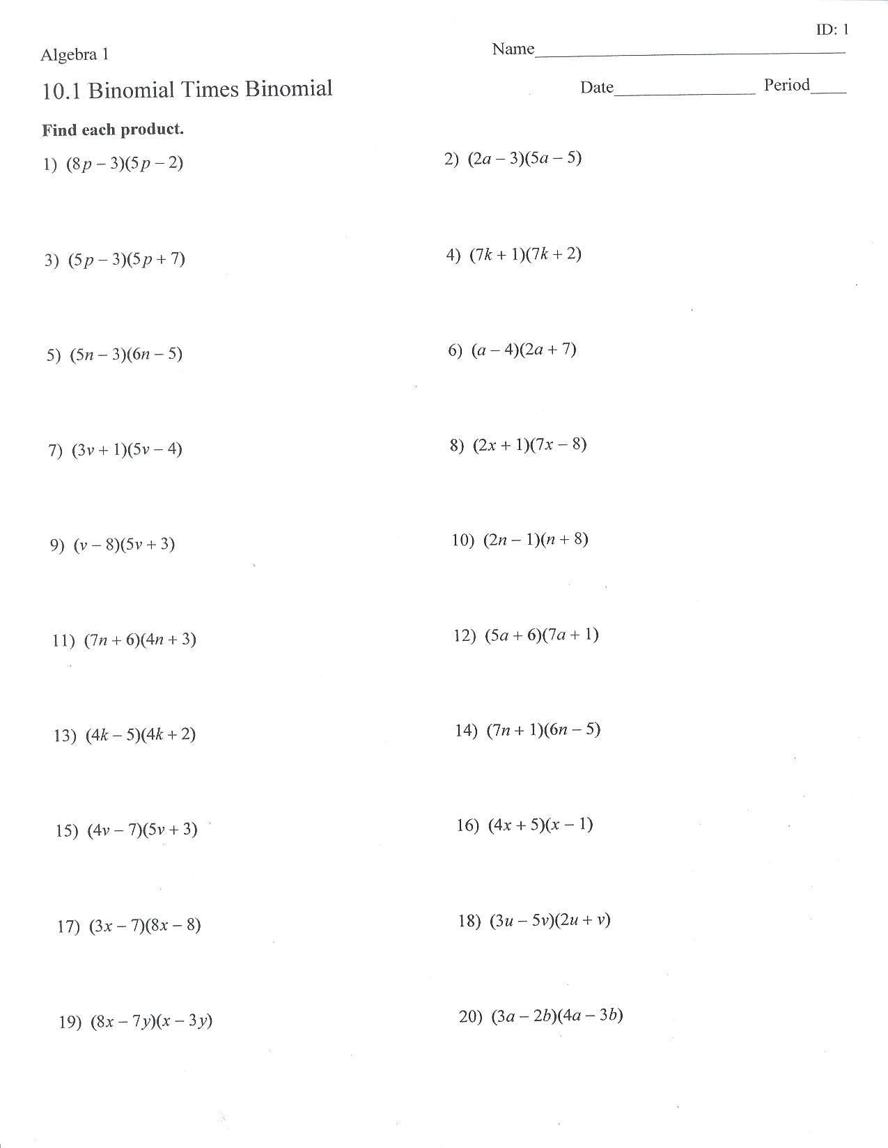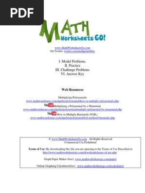 Involving single and the pdf worksheets feature grids or boxes to multiply monomials, binomials and polynomials.